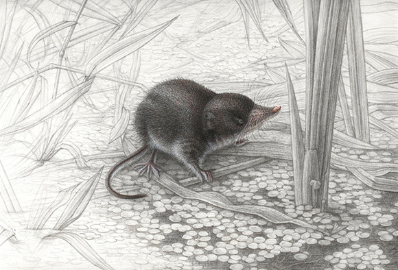 Meine sehr erfolgreiche Diplomarbeit war über Mäuse und Kleinsäuger im Ruggeller-Riet. Im speziellen hat mich die Wasserspitzmaus (grösste Spitzmaus in CH) fasziniert. Ich machte u. a. Darstellungen beim Tauchgang der Spitzmaus.