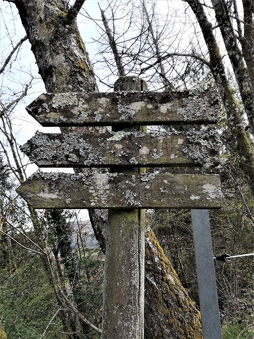 Das staunten sogar die Schwarzwaldwanderer. Anlässlich einer Wanderung am 14. April 2023, ausgehend vom Gasthaus Schillighof in Richtung der Ortschaft Hofen, entdeckte der „Hoffotograf“ Heinz Scholz drei unlesbare Wegetafeln, die mit Flechten aufgepeppt waren. Als Wernfried Hübschmann das Fotos sah, konnte er sich nicht mehr zurückhalten und schrieb zum Wegweiser ein Gedicht.