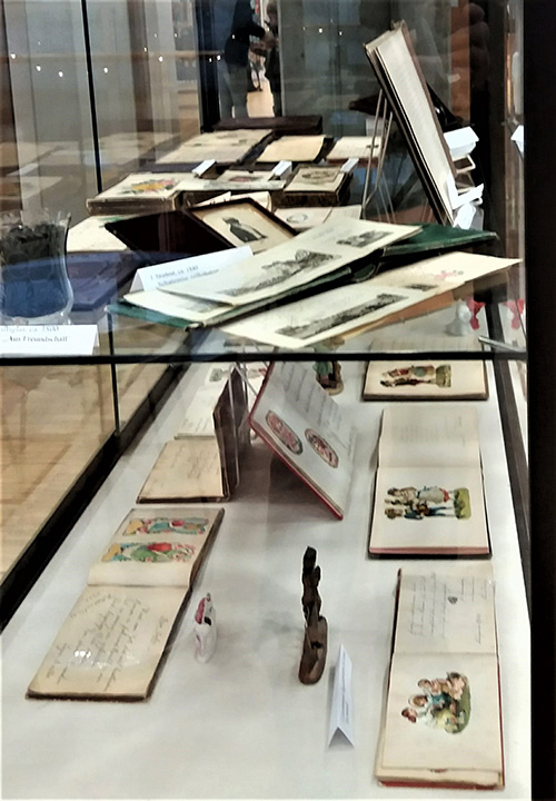In der 2. Hälfte des 19. Jahrhundert setzte sich das schon industriell gefertigte Album mit eingeklebten Oblaten durch. Alles wurde so richtig bunt, die Texte aber blieben im Wesentlichen gleich. Denn „In aller Freundschaft“ ging es noch immer um: